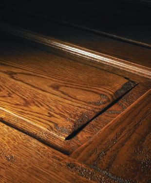 La porte AUBRAC se compose de plusieurs panneaux séparés par un cadre chêne massif. La finition prend en compte les plus infimes détails comme les chevilles en bois.