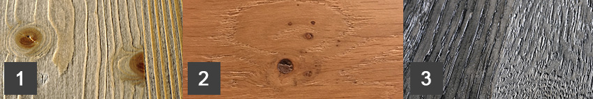 3/ CONTRASTE DE TEINTE : Chaque pièce peut refléter la lumière en des teintes différentes. La surface coupée des fibres affleurantes agissant comme autant de petits miroirs diffractant, on l'observe bien sur les pièces d'une porte qui semblent alternativement sombres ou claires selon la position de la source lumineuse par rapport à l'oeil mais aussi en fonction du sens ou type de bois sur lequel la finition est appliquée.