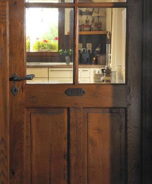 La porte CEVENNES dispose d'un vitrage, dépoli ou transparent, de 4mm bizeauté donnera un effet de relief à vos carreaux. La finition prend en compte les plus infimes détails comme les chevilles en bois.