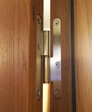 3/ CONTRASTE DE TEINTE : Chaque pièce peut refléter la lumière en des teintes différentes. La surface coupée des fibres affleurantes agissant comme autant de petits miroirs diffractant, on l'observe bien sur les pièces d'une porte qui semblent alternativement sombres ou claires selon la position de la source lumineuse par rapport à l'oeil mais aussi en fonction du sens ou type de bois sur lequel la finition est appliquée.